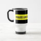 Graphic travel mug with a sign that says "Police Line Do Not Cross". Also a funny way to let people know to stay away from your coffee!