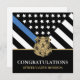 This design features a police force flag with black and white stripes, and a thin blue line stripe as well. A great way to say congratulations to the new police academy graduate. Customize with the name of the graduating law enforcement officer in gold. Celebrate this milestone in style!