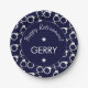 Fun police officer retirement party plates. Customise the plates by adding the recipient's name and message of your choice. Retirement party plates printed with white handcuffs on navy blue.