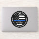 Forever In Our Hearts. Honor your beloved police officer and with this Thin Blue Line Police Memorial vehicle decal in a black and blue in police flag colors. Personalize with your officer's name, and EOW date. This thin blue line police memorial car decal will be a treasured keepsake to honor a fallen police officer or law enforcement officer. Perfect for police departments to honor a fallen officer. COPYRIGHT © 2020 Judy Burrows, Black Dog Art - All Rights Reserved. Police Officer Memorial Forever In Our Hearts Car Sticker