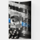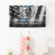 Police funeral/memorial banner featuring the usa flag, the thin blue line representing the law enforcement, string lights, a photo of your lost loved one, and a text template that is easy to personalize.