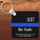 The keychain features a customizable design that includes the officer's name and badge number. This personal touch ensures that the gift is as unique as the officer it's intended for. Along with the customization, the keychain also features the phrase 'Be Safe,' serving as a constant reminder of the importance of staying safe while on the job.