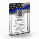 Classy badge and waving thin blue line police flag design. Silver badge, silver laurel wreath and metallic look border frame.