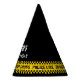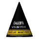 Police Birthday Party Hat featuring a modern design with yellow police line do not cross tape. For the perfect police birthday party, detective game night or for a crime themed escape room event. Customizable products for a memorable celebration.