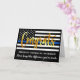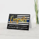 Thin Blue Line Police Retirement Congratulations Card. US American flag design in Police colors, modern black blue design with elegant 'Congrats' in gold script. Quote " Never Forget the Difference You've Made". Personalized from with your officers name and customize the inside with your personal message. See our collection for matching law enforcement retirement invitations, police retirement gifts, party favors, and supplies. COPYRIGHT © 2020 Judy Burrows, Black Dog Art - All Rights Reserved. Police Retirement Gold Script Blue Line Congrats Card
