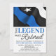 The Legend Has Retired! Thin Blue Line Police Retirement Invitations. Celebrate years of dedicated service, your police officer retirement and invite friends and family to your law enforcement party with this modern Thin Blue Line Flag Police Retirement Invitation. USA American flag design in Police Flag colors, modern black blue white design. See our collection for matching police retirement gifts, police retirement party favors, and supplies. COPYRIGHT © 2021 Judy Burrows, Black Dog Art - All Rights Reserved. Police Legend Retired Thin Blue Line Retirement Invitation