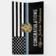 This design features a police force flag with black and white stripes, and a thin blue line stripe as well. Customize with the name of the retiring or graduating law enforcement officer, sheriff, captain, or chief. A great way to say congratulations to the new retiree or graduate for their retirement or graduation from police academy.
