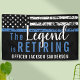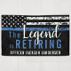 This design features a police force flag with black and white stripes, and a thin blue line stripe as well. "The Legend is Retiring" text sits above the customizable name of the retiring law enforcement officer, sheriff, captain, or chief. Celebrate this milestone in style!
