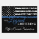 This design features a police force flag with black and white stripes, and a thin blue line stripe as well. "The Legend is Retiring" text sits above the customizable name of the retiring law enforcement officer, sheriff, captain, or chief. Celebrate this milestone in style!