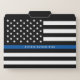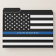 These file folders feature a black and white police thin blue line American flag and a name for you to personalize.
