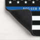 Show your support with this black and white police thin blue line American flag mouse pad. Personalize by replacing sample name with your own officer's name.