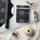 A custom police wrapping paper featuring a thin blue line running behind a monogram centered inside of a faux gold shield or wreath. Underneath is a spot for your own words.