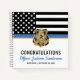 This design features a police force flag with black and white stripes, and a thin blue line stripe as well. Customize with the name of the retiring or graduating law enforcement officer, sheriff, captain, or chief. A great way to say congratulations to the new retiree or graduate for their retirement or graduation from police academy.
