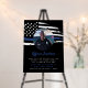 This retirement party welcome sign features a distressed watercolor thin blue line flag and simple neutral design. This invitation can be used to celebrate police first responders as well as navy or air force personnel.