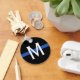 This police thin blue line key chain has a horizontal blue stripe on a black background and a monogram initial in white for you to personalize.