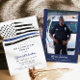This graduation party invitation features a distressed watercolor thin blue line flag and simple neutral design. This invitation can be used to celebrate police first responders as well as navy or air force personnel.