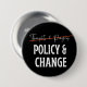 Pro Gun Control pin back button design has "thoughts & prayers" lined out and replaced with "Policy & Change", addressing the never ending gun violence in America.