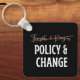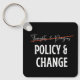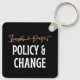 Pro Gun Control keychain design has "thoughts & prayers" lined out and replaced with "Policy & Change", addressing the never ending gun violence in America.