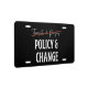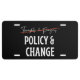Pro Gun Control license plate design has "thoughts & prayers" lined out and replaced with "Policy & Change", addressing the never ending gun violence in America.