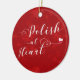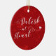 Lightweight, smooth, pure white ornament with nice sheen. Perfect size to be seen from across the room ... and to attract closer inspection! Price was great for ordering enough for the whole family! Clear, bold black design just as requested. Matches the order exactly. Just so nice!