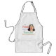 The apron is of very good quality. I used it while icing cookies. The dark colored icing washed off of the apron very well! The neck strap is sturdy and easy to resize on the adult size apron. The print was clear and well defined. I am glad I was able to personalize with name.