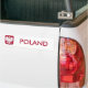 The coat of arms of Poland is a white, crowned eagle with a golden beak and talons, on a red background.