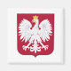 The coat of arms of Poland is a white, crowned eagle with a golden beak and talons, on a red background.