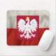The coat of arms of Poland is a white, crowned eagle with a golden beak and talons, on a red background.