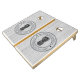 Polished Gray Wood Pineapple Wedding Crest & Names Cornhole Set