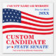 Patriotic design with waving American flag on white background. Red and blue lettering is bright, bold with six easy edit text fields. All colors, text and elements can be changed, resized or moved in this fully editable template to kick-off your campaign at an affordable price.