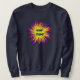 This sweatshirt features a political starburst abstract pattern in red, yellow and blue with the words Dump Trump in the center. Text can be customized.