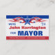 Political Campaign - Mayor business card in eye-catching red, white & blue! Easy to personalize and/or customize.