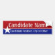 Are you running for office and just need a couple bumper stickers? Or - Do you want to show your support for a candidate with a custom sticker? Fill in the information... and if it still needs adjusting or you want to change the font, click on --Customize it!-- to make those adjustments.