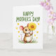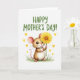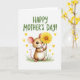 This card shows an adorable, human-like rodent standing front and center, its plush-looking fur shaded in warm browns and creamy whites with soft pink inside the big ears and on the tiny paws ❤️. The character’s gentle eyes and fine whiskers give it a tender, friendly look, as if it’s offering a small gesture of affection. It holds a large, bright yellow flower close to its face, the layered petals fanning out around a golden-orange center like a sunny dandelion. Near the top, a seasonal greeting appears in thick, hand-drawn green lettering against a white background, leaving plenty of open space around the art. Small golden-yellow hearts float across the background, adding a sweet, romantic touch without crowding the scene 🌼. At the bottom edge, a simple strip of green grass grounds the character, while a slender reddish tail curves subtly to one side. The flower partly covers the character’s mouth and nose, with petal tips reaching toward the cheeks and ears.