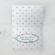 white sheer bow and ribbon on black background with white polka dots and turquoise flower for birthday