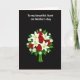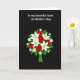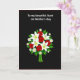 This card features a deep black background that makes the flowers and message feel intimate and close, like a quiet moment shared with someone you care about ❤️. A thin red border traces the edges, adding a gentle warmth that frames the scene. At the top, white text is centered and reads, “To my beautiful Aunt on Mother’s Day,” standing out sharply against the dark backdrop. Beneath the words, a full bouquet fills the middle, arranged in a way that suggests affection through its careful balance and closeness of each bloom. White lilies with soft yellow-green centers sit alongside deep red roses, their rich petals giving a romantic touch without needing anything else said. Small white daisies with sunny yellow centers are sprinkled throughout, adding a light, friendly charm 🌼. Green leaves spread outward and downward, giving the bouquet a layered, natural base. The red border remains thin and even around all four sides, enclosing the flowers like a neat frame.