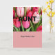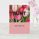 This greeting card shows a lush cluster of tulips filling the top half, with petals shifting from soft blush pink to deeper magenta and rich red, touched by gentle light that makes them look velvety and close enough to brush your cheek. Fresh green leaves peek between the blooms, adding a calm, natural contrast that feels like a caring hug from someone you trust ❤️. Across the flowers, the large word “AUNT” appears in black, set in a simple, modern style, with thin horizontal lines extending outward to give it a confident, steady emphasis. The strong lettering laid over the tender petals creates a sweet push-and-pull, like a warm bond that’s both affectionate and proudly stated. Below, the design opens into a wide, uncluttered field of pastel pink that lets the message breathe, like a quiet pause after laughter shared with family 👩. Centered on this lower area, “Happy Mother’s Day!” is written in black with a more classic letter style, sized smaller than the top word and easy to read at a glance. The background stays a smooth, solid pastel pink with no pattern, while the tulips remain tightly grouped at the top edge.