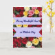 Designed with an abundant bouquet of roses filling the frame, this card shows layers of blooms packed close together like a loving embrace ❤️. Deep red, soft pink, creamy white, and warm yellow flowers mingle with small pockets of green leaves, giving the arrangement a fresh garden feel. Across the middle, a lavender banner stretches horizontally, gently dividing the sea of petals and adding a calm, affectionate pause in the design. The message is placed on this banner in flowing dark blue lettering, with “For my Wonderful Aunt,” on the upper line and “on Mother’s Day” on the lower line. The close-up floral setting and the tender, carefully centered wording create a cozy, family-close mood, like a warm hug shared across the room. Bright, even lighting highlights the velvety texture of the petals and the delicate curves of each bloom 🌼. The lavender strip sits centered, with the dark blue text clearly readable against the pastel background.