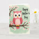 Designed with two sweet bird-like figures perched close together on a flowering branch, this illustration shows their heads tilted as if sharing a quiet, affectionate moment ❤️. The larger bird is shaded in soft rose and deeper red tones, with wide, shiny eyes that seem to gaze warmly toward its companion. A smaller matching bird nestles at its side, echoing the same rounded shapes and suggesting closeness through their snug spacing. Each bird has a heart-shaped marking on its chest, adding a gentle romantic touch without overpowering the scene. Behind them, a muted sage-green background has a lightly brushed texture that keeps the mood calm and springlike 🌼. Dark, curling branches stretch across the space and hold clusters of white blossoms with rich red centers. A short Mother’s Day message sits in the upper right in a thin, flowing dark font, leaving the birds and blooms as the main focus. The blossoms show crisp white petals circling ruby-red centers along the twisting branches.