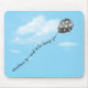 Floating black and white polka dot balloon in clouds with inspirational quote