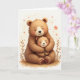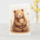This design shows two cuddly bear-like figures centered in a close embrace, with the larger one wrapping both arms around the smaller one in a protective, affectionate pose ❤️. Their fur is textured in warm browns, shifting from honey-gold on the snouts to deeper coffee tones along the edges, and their softly closed eyes with long lashes suggest calm trust between them. Gentle blush on their cheeks and the way their heads lean together adds a quiet romance of family-like closeness without needing any extra words. The lighting is soft and diffused, making their rounded shapes look plush against an off-white background washed with a light watercolor haze. Along the lower edge, thin, stylized branches and wispy grasses in muted sepia rise up like a simple frame, keeping the scene grounded. Small star-shaped flowers and scattered dots float around them in pale coral and soft orange, adding a light, airy sparkle 🌼. There is no visible text, and the illustration remains the focus in the center with open space surrounding it. Star-like blossoms and tiny dotted accents drift across the upper area in soft coral and orange tones.