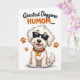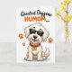 This card features a fluffy, snow-white dog sitting upright with a wide grin, a tiny pink tongue showing, and dark sunglasses that give it a cool, friendly look. The dog’s relaxed posture and bright expression suggest the kind of loyal companionship that feels a lot like love ❤️. The background stays plain white, keeping all attention on the pup and its cozy, affectionate presence. Near the top, the phrase “Greatest Doggone HUMOM...” appears in thick orange lettering, centered above the character. Around the dog, small orange paw prints are scattered in a loose ring, adding a light, celebratory motion to the otherwise simple layout 🌼. The lighting is even and soft, highlighting the fluffy texture of the fur and a subtle shine on the sunglasses. A noticeable detail is the orange collar with small black dots and a dangling golden bone-shaped charm near the dog’s chest.