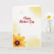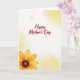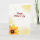 This card features a tender floral scene that feels like a gentle hug for Mother’s Day ❤️. Near the upper middle, a loving phrase sits prominently in deep red lettering, standing out against a softly glowing background. The text has smooth, flowing strokes and enough spacing to feel airy rather than crowded. In the lower-left area, a large flower opens wide, with petals shifting from golden yellow into warm orange, like late-afternoon sunlight. Its dark center is richly textured, drawing your eye the way a caring gaze pulls you closer. Behind it all, the backdrop is washed in pale ochre with faint, blurry circular highlights scattered mostly to the right, adding a calm, dreamy warmth 🌼. The flower’s petals curve outward in broad arcs, while small light spots hover in the upper-right and lower-right corners.