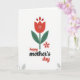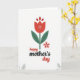 Designed with a tall crimson flower centered on a white background, this card keeps the focus on a single bloom that feels like a quiet love note ❤️. The scarlet petals have tiny white dotted details inside, giving the flower a gentle, tender texture without adding clutter. Deep emerald leaves sit symmetrically at the base of the stem, like steady arms holding the scene together. Off to the right, a small blush-pink five-petal blossom floats nearby, suggesting a sweet companion presence, like a close friend leaning in. Beneath the flowers, the word “happy” appears first and “day” appears later in rounded, flowing lettering colored to match the red flower, while “Mother’s” sits between them in a charcoal-gray tone for contrast 🌼. The arrangement feels calm and affectionate through its balanced spacing and the soft way the smaller bloom offsets the central stem. The text is placed below the botanical artwork, with “happy” and “Mother’s” on one line and “day” just beneath, all centered under the flowers.