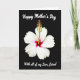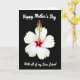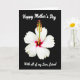This card features a single white tropical flower centered against a deep black background, its wide petals opening like a gentle embrace between close friends ❤️. Soft lighting traces faint veins through the petals, giving them a silky texture and a quiet, intimate glow. Near the middle, a rich red center fades toward magenta, leading the eye to a bright green central stem that feels like a shared promise held close. Above the bloom, the words “Happy Mother’s Day” appear in flowing white lettering, arcing slightly as if floating over the petals. Below the flower, “With all of my Love, friend” sits in the same white lettering, balanced and easy to read without crowding the image 🌼. Small orange tips cluster near the top of the stem, while a pink rounded tip stands out at the center like a tiny crown. The dark background looks velvety, making the white petals and the red-to-magenta center stand out sharply.