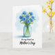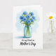 Designed with a soft watercolor look, the card shows a centered bouquet of nine periwinkle-blue flowers gathered in a clear glass jar. Each bloom has a slightly deeper blue center, and the tightly layered petals feel like they’re leaning toward one another like close friends ❤️. Slender green stems and leaves rise above the jar and remain visible through the glass, adding a gentle, fresh contrast. Behind the bouquet, a pale blue wash spreads loosely across the background, like a calm sky that keeps the focus on the flowers. A faint blue shadow sits beneath the jar to anchor it on the white space below. Near the bottom, a friendly message in a flowing, handwritten-style font reads “For my Friend on Mother’s Day,” set in a soft blue that matches the artwork 🌼. The jar’s rim and curved sides catch light with delicate highlights, while the bouquet stays neatly centered above the text. Share Mother’s Day sentiments with someone who feels like family.