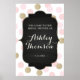 Add a special touch to your bridal shower party or wedding with this polka dot poster. It feature fun gold glitter and pink polka dots with the words "Welcome To Our Bridal Shower". Customize this DIY wedding poster with the bride's name and display it as a decoration at your shower. Or customize it for a baby shower, engagement party or whatever you like.