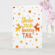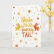 This greeting card features a bright digital illustration with the phrase “Shake YOUR bunny TAIL” centered in chunky golden yellow and warm orange lettering, with “YOUR” set in uppercase for emphasis. Two cute rabbit characters 🐰 frame the words like close friends cheering each other on, leaning inward with small smiles that feel inviting. The left rabbit is sunny yellow with soft pink inner ears, while the right rabbit is a deeper orange with a tiny tooth showing, as if mid-giggle. Short curved lines near the orange rabbit’s cheeks suggest a little laugh or happy chatter between them 🐇. The background stays white, letting the warm colors stand out without feeling heavy. Scattered across the page are polka dots in mixed sizes, alternating yellow and orange like confetti around the pair. The dots are slightly softened at the edges, and the orange rabbit’s cheek lines sit just outside its face near the right side of the centered text.