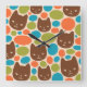 Colorful Polka Dot Cats Pattern in Brown Orange Cyan Blue & Olive Green.