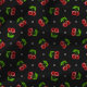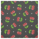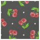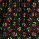 This vibrant fabric features a playful pattern of bright red cherries scattered across a deep charcoal background, complemented by small white polka dots. The rich contrast between the red cherries and the dark background creates a striking visual appeal, perfect for adding a fun and retro touch to your sewing projects. Ideal for creating unique apparel, accessories, or home decor, this fabric brings a burst of color and charm to any design.